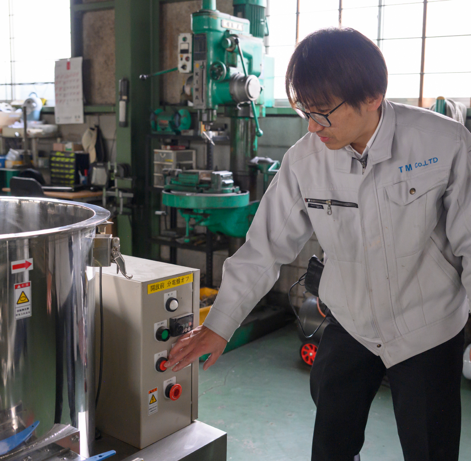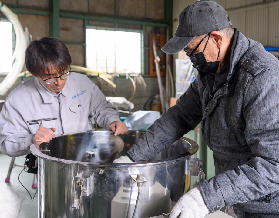 大阪工場に原料を持ち込んでいただくか、機械を現地に持ち込んでテストを実施。実際に動作を確認してから、導入をご検討いただけます。「やってみたら混ざらなかった」「思ったより処理できなかった」というリスクを回避できるため、多くのお客様にご利用いただいています。安心して導入していただくための、ティエムコーポレーションのこだわりです。