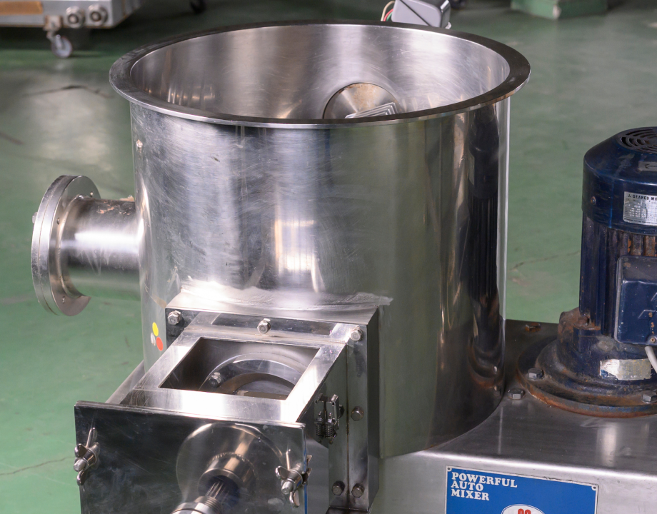 容積効率70%でコンパクト、特殊攪拌羽根で短時間混合。清掃が容易で食品にも最適。
